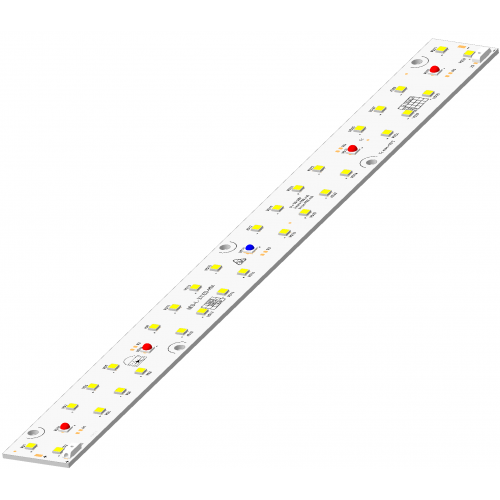 Линейка; 280x24мм; LEDs: белый 32шт SPMWHD32AMH1XAH0S0; красный 4шт SLW3535HRV1G; синий 1шт SLW3535BV4GT; Uf: 30-38В; If(typ): 350мА; Разъем: 2 шт NS2059-301; Материал: Al; Толщина: 1,6мм; PPE: 3,08 umol/J; для всех этапов роста